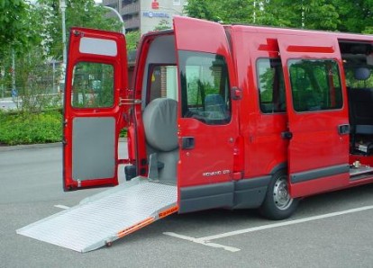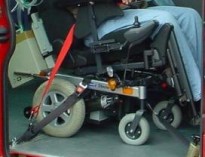 Der Rollstuhl selbst wird mit vier Spanngurten am Fahrzeugboden befestigt,